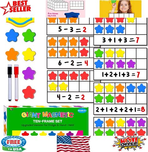 Magnetic Ten-Frame Set - Math Manipulative For Elementary - 5 Ten