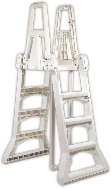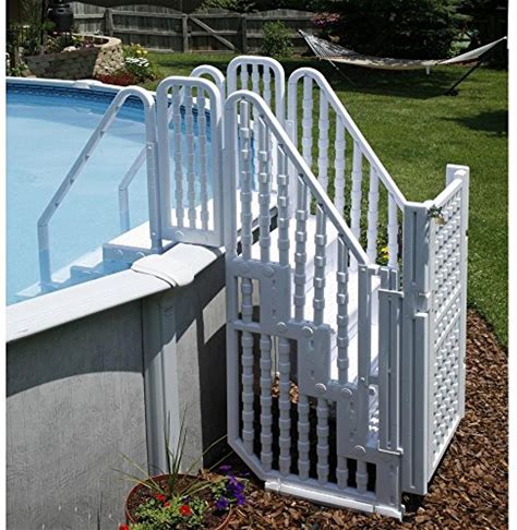 Vinyl Works Model CE Swimming Pool Step Ladder Entry System For Above Ground Swimming Pools With Self-Closing Gate | Accommodates Pools 48" To 56" In Height | Taupe