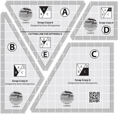 Creative Grids Scrap Crazy 6 Templates Quilt Ruler CGRMT6