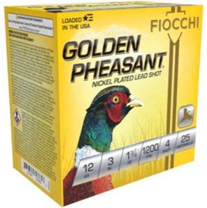 Fiocchi Golden Pheasant Nickel Plated 12 Gauge 1 3/4Oz 3in Shotgun Ammo, 4 Shot, 25 Rounds, 123GP4