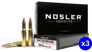 Nosler .308 Winchester 175 Grain Custom Competition Brass Cased Centerfire Rifle Ammo, 60 Rounds