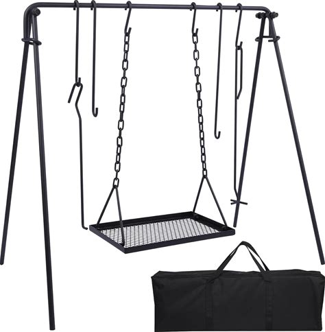 FEBTECH - 55" Steel Tripod Grilling Set - Camping Accessories For BBQ Grill Cooking - Camping Charcoal Grills Grate - Campfire Grill Grate Over Fire Pit With Tripod Stand