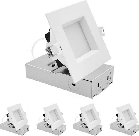 Luxrite 3 Inch Square LED Recessed Ceiling Light With J-Box, CRI90, 8W, 5CCT Selectable 2700K/3000K/3500K/4000K/5000K, 740 Lumens, Dimmable Canless