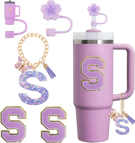 QUNNDY 5Pcs Cup Accessories Set For Stanley Cup 30 Oz 40 Oz Tumbler With Handle, Including Siliocne Straw Cover Cap, Letter Charm For Stanley Cups,