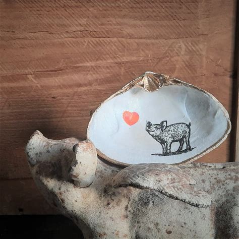 Clam Shell Art Pig With Heart