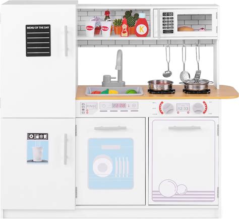 Garvee Wooden Play Kitchen Set, Pretend Play Kitchen With Cookware Accessories, Microwave, Oven, Sink, Real Lights Sounds For 3+ Chef Pretend Play, White