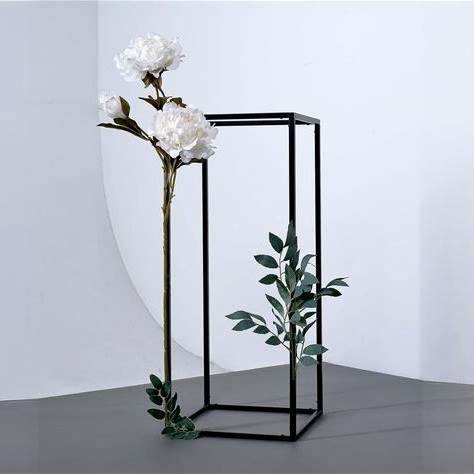 2-Pack Wedding Flower Stand Matte Black Metal Geometric Column Frame Rectangular - Versatile Floral Pedestal For Sophisticated Arrangements 16" - Wholesale By Tableclothsfactory