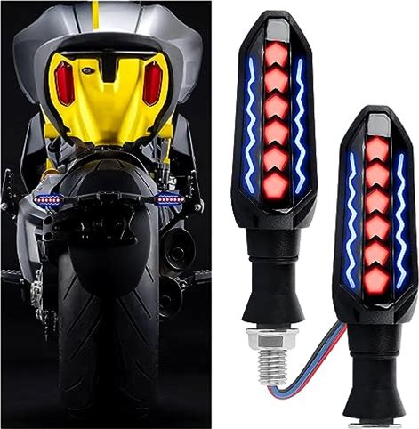 2PCS Motorcycle Turn Signals LED,Cool Flowing Motorcycle Blinkers Indicators,Universal 12V Motorcycle Lights Sequential Turn Signal For Motorcycle Scooter (Red-White)(Red-Blue)