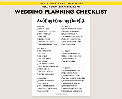 Editable & Printable Wedding Checklist A4, A5, A6 Sizes Instant Download For Calm Wedding Planning