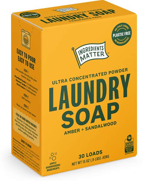 Ingredients Matter Powder Laundry Soap - Amber + Sandalwood Scent, Hypoallergenic Detergent, Natural & Eco-Friendly, Plastic Free, Natural Essential