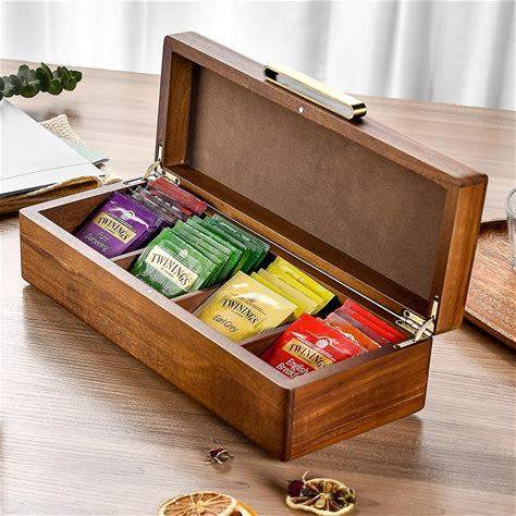 Wooden Tea Gift Box Christmas Present For Her Acacia Organizer With Lid Winter Tea Selection Crate Engraved Tea Display Holiday Moment