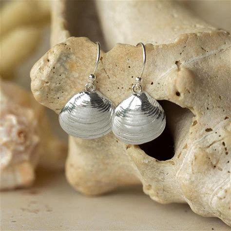 Silver Venus Clam Shell Pendant Earrings: Handmade Beach Shell Drop Hook Earrings