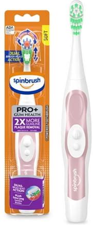 Spinbrush Pro+ Gum Health Battery Powered Toothbrush For Adults, Helps Plaque Removal, Soft Bristles