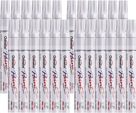 Overseas White Paint Pens Permanent Markers 24 Pcs, Oil Based Paint Markers Set, Quick Drying, Waterproof, Medium Tip Marker Pens For Metal, Rock,
